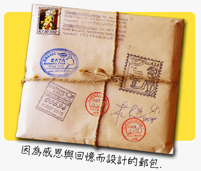一個充滿回憶與手感的郵包,外觀上有著令人跨越時空感的精緻郵戳與郵票,